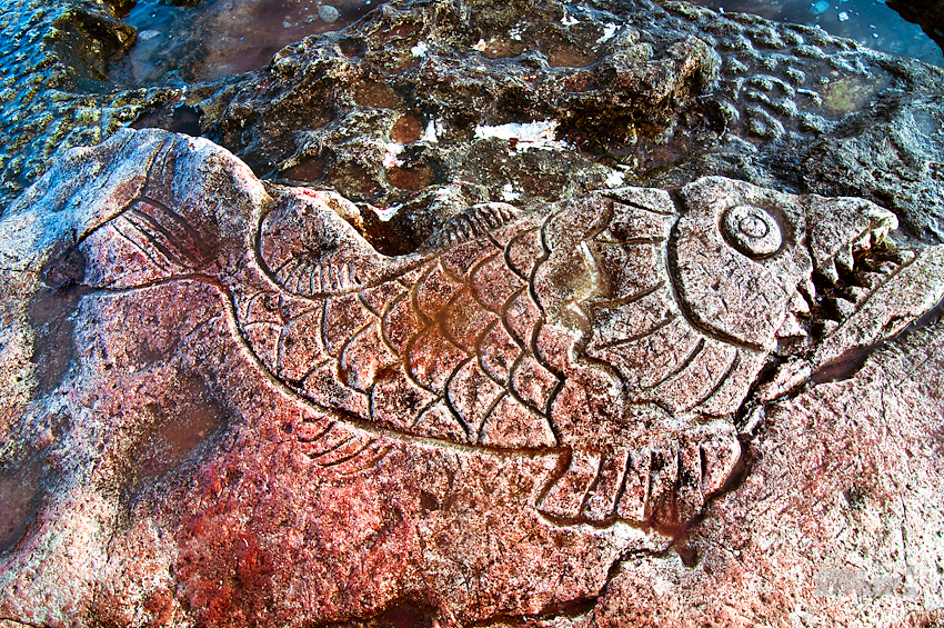 На диком пляже между Голубой бухтой и мысом Херсонес на прибрежных камнях высечены рисунки различных животных. На первый взгляд кажется, что они сохранились еще с древних времен, но на самом деле они современные, их высекают обычные ребята, которые каждый год приезжают на отдых в Севастополь.