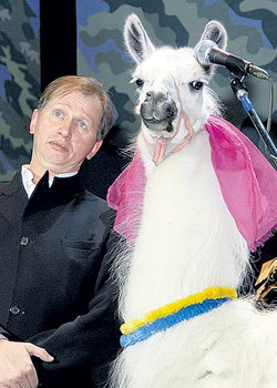 Соведущие церемонии закрытия - актёр и певец Андрей АНКУДИНОВ и лама Ника