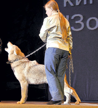 Получив приз, волчица Гера исполнила на сцене победную песнь