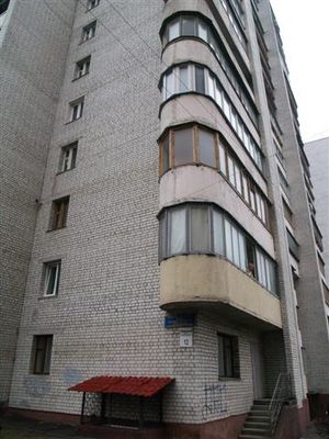 Этот девятиэтажный дом по улице Генерала Наумова, 19, был построен в 1985 году для работников одного из институтов Академии наук Украины, примерно лет 10-12 он значился как общежитие семейного типа, потом стал обычным домом. В самой же квартире, как нам сказали соседи, живет какая-то молодая пара, но их практически никто не видит и не знает, кто они такие.