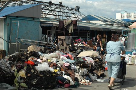 Вчера, 9 августа, с самого утра люди выгребали из контейнеров сгоревший товар: магнитофоны, магнитолы, инструменты, потрескавшиеся от высокой температуры унитазы и умывальники, кучи с остатками одежды, в которых рылись цыгане – им разрешили забирать хоть немного уцелевшие лохмотья.