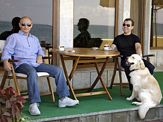 Вначале Медведев и Путин отравились на набережную и прошлись по пирсу. Потом вернулись к зданию резиденции и на веранде продолжили разговор за чашкой чая. Все это время от них не отставал золотистый ретривер президента по кличке Альдо, который по очереди ласкался то к своему хозяину, то к приехавшему в гости премьеру.