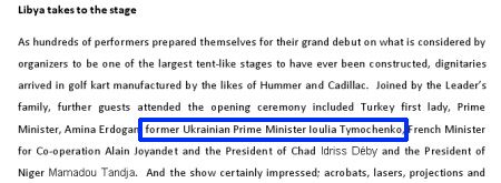 Организаторы мероприятия в честь 40-летия Сентябрьской революции в Ливии назвали Юлию Тимошенко «бывшим премьер-министром Украины».