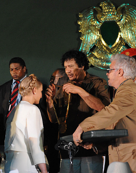 Также «бывшим премьер-министром» Тимошенко назвали на подписи к фотографии, на которой лидер Ливии Муаммар Каддафи вручает ей награду.