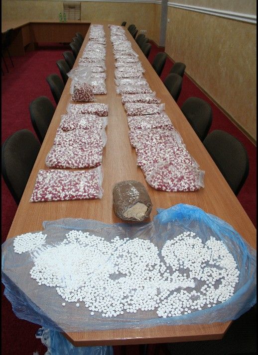 Проводя обыск в помещении задержанного, оперативники изъяли еще 120 тысяч таблеток трамадола, тысячу таблеток экстази и один килограмм амфетамина.