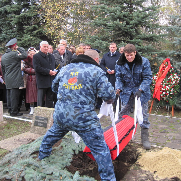 После перезахоронения Михаил Добкин также возложил цветы на могилу Евгения Кушнарева.