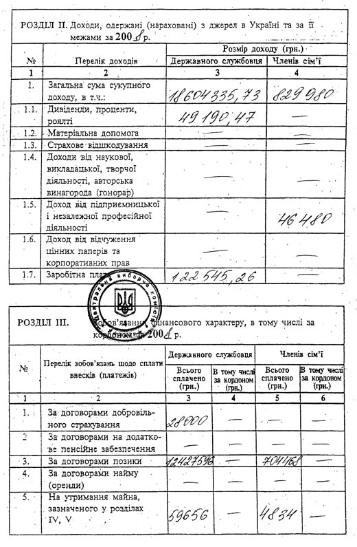 Из этой суммы 49 тыс. 190 грн ему принесли дивиденды, проценты и роялти. 122 тыс. 545 грн Бродский получил как заработную плату. Однако за счет чего он заработал 18 млн. грн, кандидат в декларации не уточнил.
