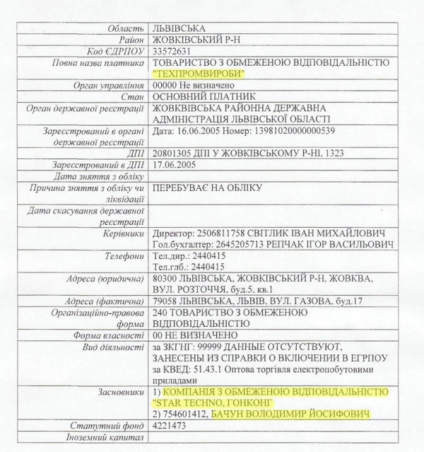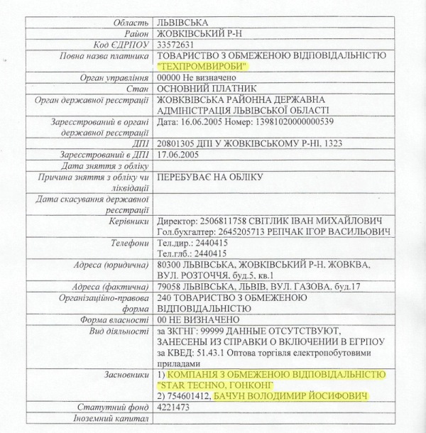 Народный депутат Украины Владимир Пилипенко послал депутатский запрос на имя главы ГНАУ С. Буряка, прокурора Львовской области О. Баганца (копии в Совет Судей Украины и Совет судей административных судов Украины) об уклонении от уплаты налогов украино-гонгконгской компанией «Техпромизделия».