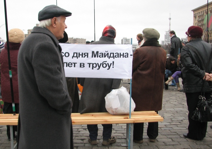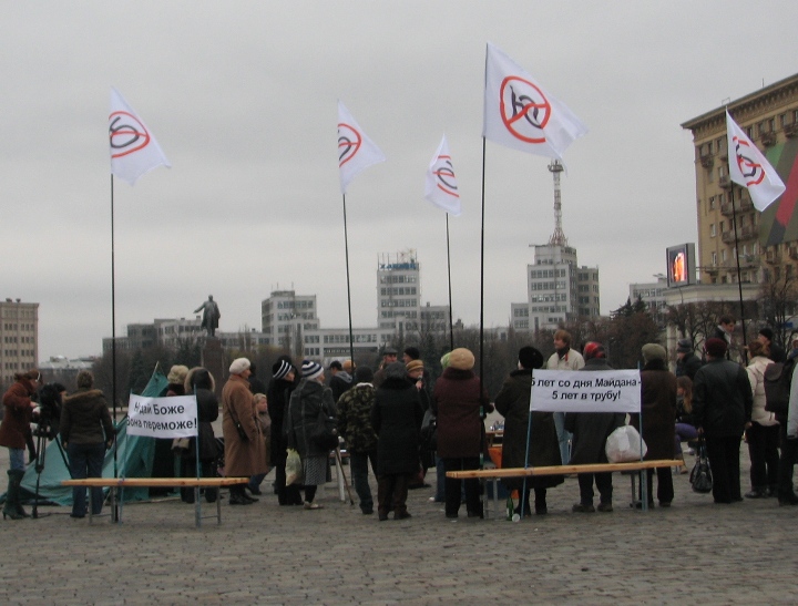 Пришли на площадь Свободы, расставили плакаты, палатки, подключили технику – все по-серьезному, как-никак, «праздник»: пять лет Майдана. Правда, непонятно – то ли юбилей, то ли годовщина.