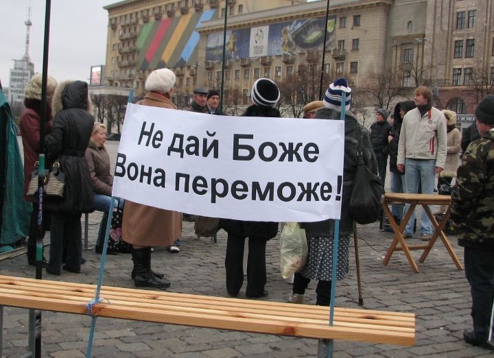 «Мы хотим показать тем людям, которые в 2004-м стояли на Майдане, за что они боролись и что они в итоге получили. Харьковчане, не повторите ошибку пятилетней давности», – призывают участники акции.