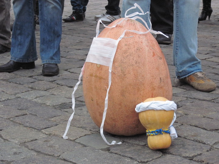 Напомним, после объявления эпидемии представители БЮТ раздаривали харьковчанам лук и чеснок. Тыквы - это ответный подарок горожан.