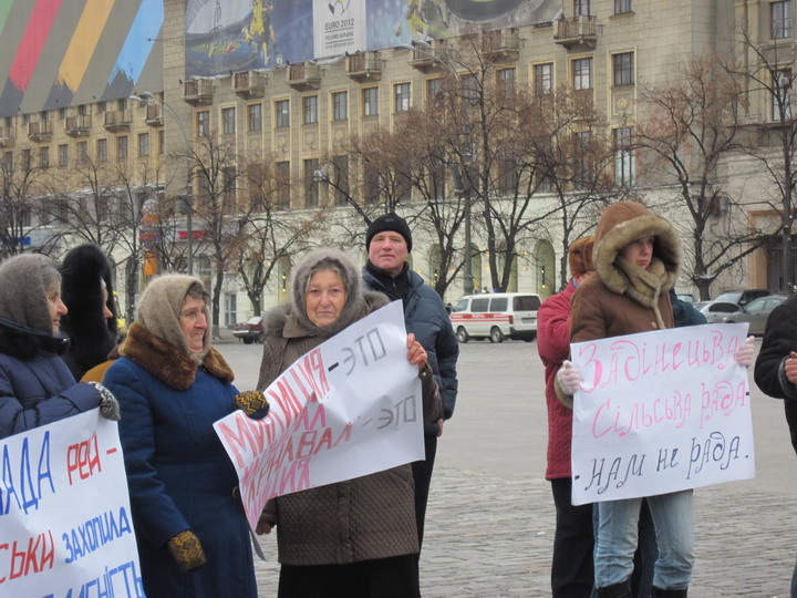 8 декабря на площади Свободы в Харькове прошел пикет жителей села Омельченки Змиевского района. Старушки и старички приехали в областной центр требовать у облгосадминистрации вернуть им газопровод, который кооперативом был проведен в село еще в 1989 году.