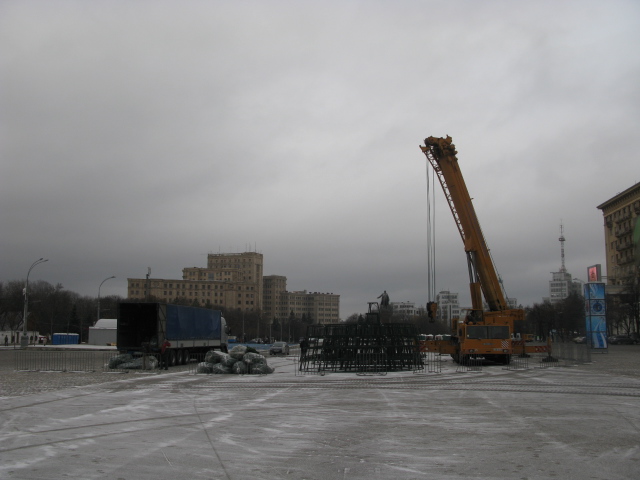Здравствуй, Новый год! На площади начат монтаж главного новогоднего украшения Харькова (ФОТО, первые кадры)