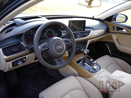 Но для статусного автомобиля важно и качество салона. Здесь Audi A6 оказалась на высоте. Уже знакомый по A7 Sportback салон оставили практически без изменений. Только изменили конфигурацию задних сидений и в A6 появилось больше места, а сама посадка стала удобнее, чем в хэтчбеке.