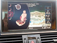 На центральной консоли в A6 есть сенсорная панель с клавиатурой «тач пад», с которой можно быстро набрать номер телефона, или задать адрес в навигационной системе. Но самая главная «фишка» - это мультимедийная система. В Италии нас просто радовала навигация, которая прекрасно говорит по-русски, притом картинку можно сделать как 3D, так и вообще перейти к спутниковой карте, с помощью онлайн-сервиса от Google..jpg)