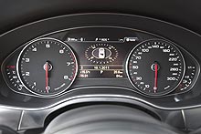 Всматриваться в дорожные знаки в Audi A6 также уже не обязательно. Их считывает камера системы Lane Assist, установленная над зеркалом заднего вида и они отображаются либо на панели приборов, либо проецируются прямо на лобовое стекло. Ночью ассистент ночного видения работает с инфракрасной видеокамерой и распознает пешеходов, обнаруженных перед автомобилем. Система отображает черно-белые изображения на дисплее панели приборов; если ситуация расценивается как потенциально опасная, силуэт пешехода отображается красным цветом..jpg)
