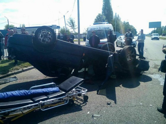 ДТП с переворотом в Харькове: есть пострадавшие (ФОТО)