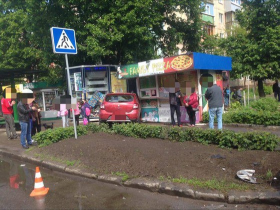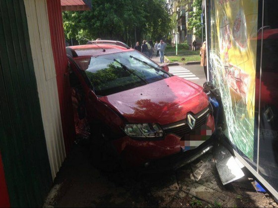 После столкновения автомобиль «Renault Sandero» вылетел на тротуар и зацепил сигаретный киоск и киоск, торгующий фаст-фудом.