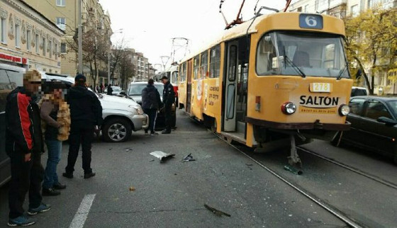 ДТП: с трамваем «бодались» внедорожники (ФОТО, ВИДЕО)
