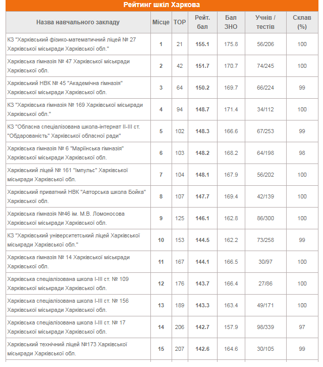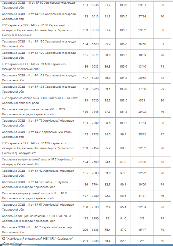Среди харьковских школ в рейтинг вошли (местро в ТОП-200 - во второй колонке):