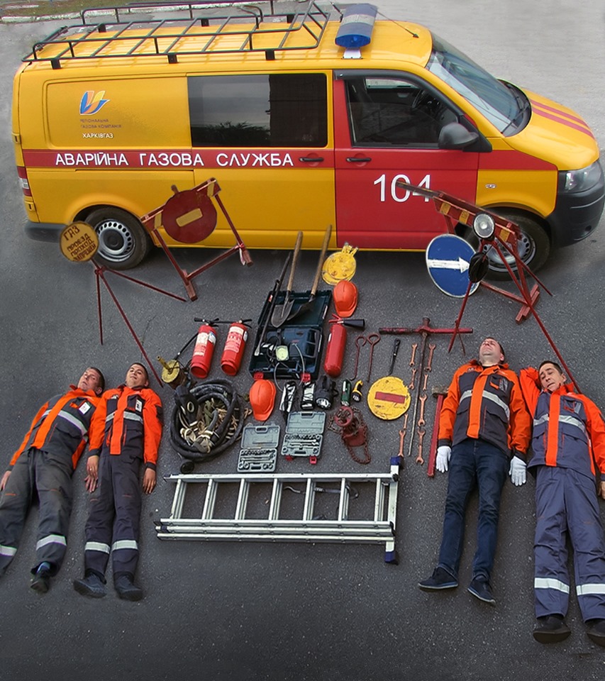 Харьковские газовщики присоединились к международному #TetrisChallenge, сделав фото, лежа на асфальте.