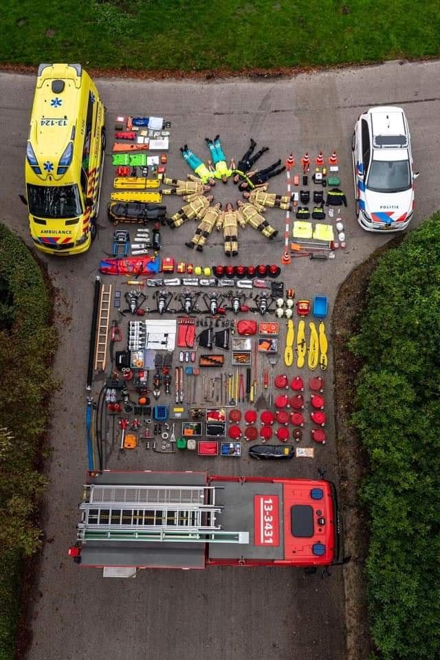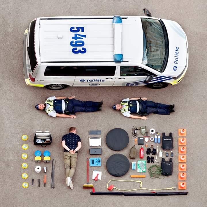 В день открытых дверей полицейские разложили оборудование рядом с патрульной машиной и присоединились к этому набору.
