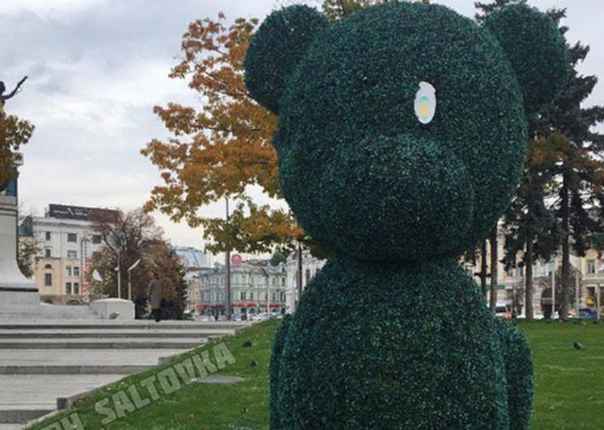 Декоративный медведь из зелени, который стоит на площади Конституции, стал выглядеть иначе.