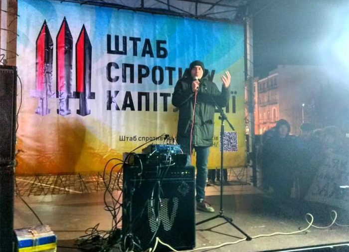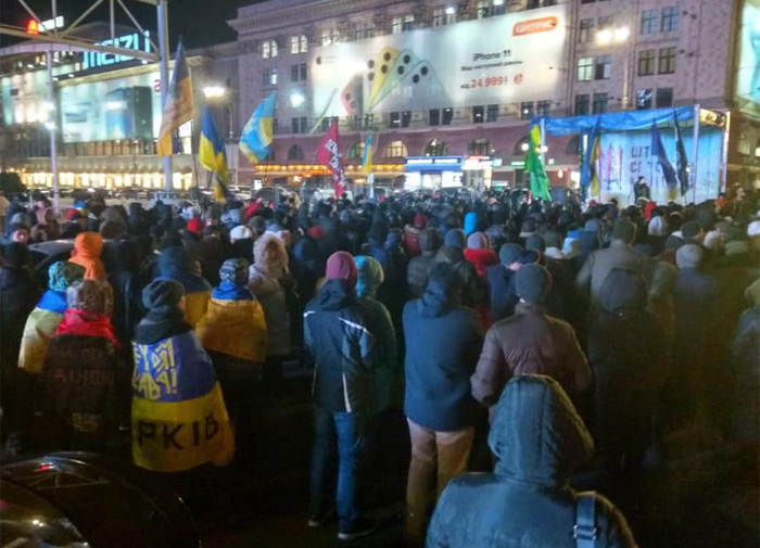 Митинг прошел на площади Свободы, возле палатки «Все для победы». В нем приняли участие около двух сотен человек - активисты, волонтеры, родные харьковчан - Героев Небесной Сотни, ветераны АТО и ООС. Люди пришли с украинскими флагами. Также у некоторых были флаги «Нацкорпуса» и националистическая символика.