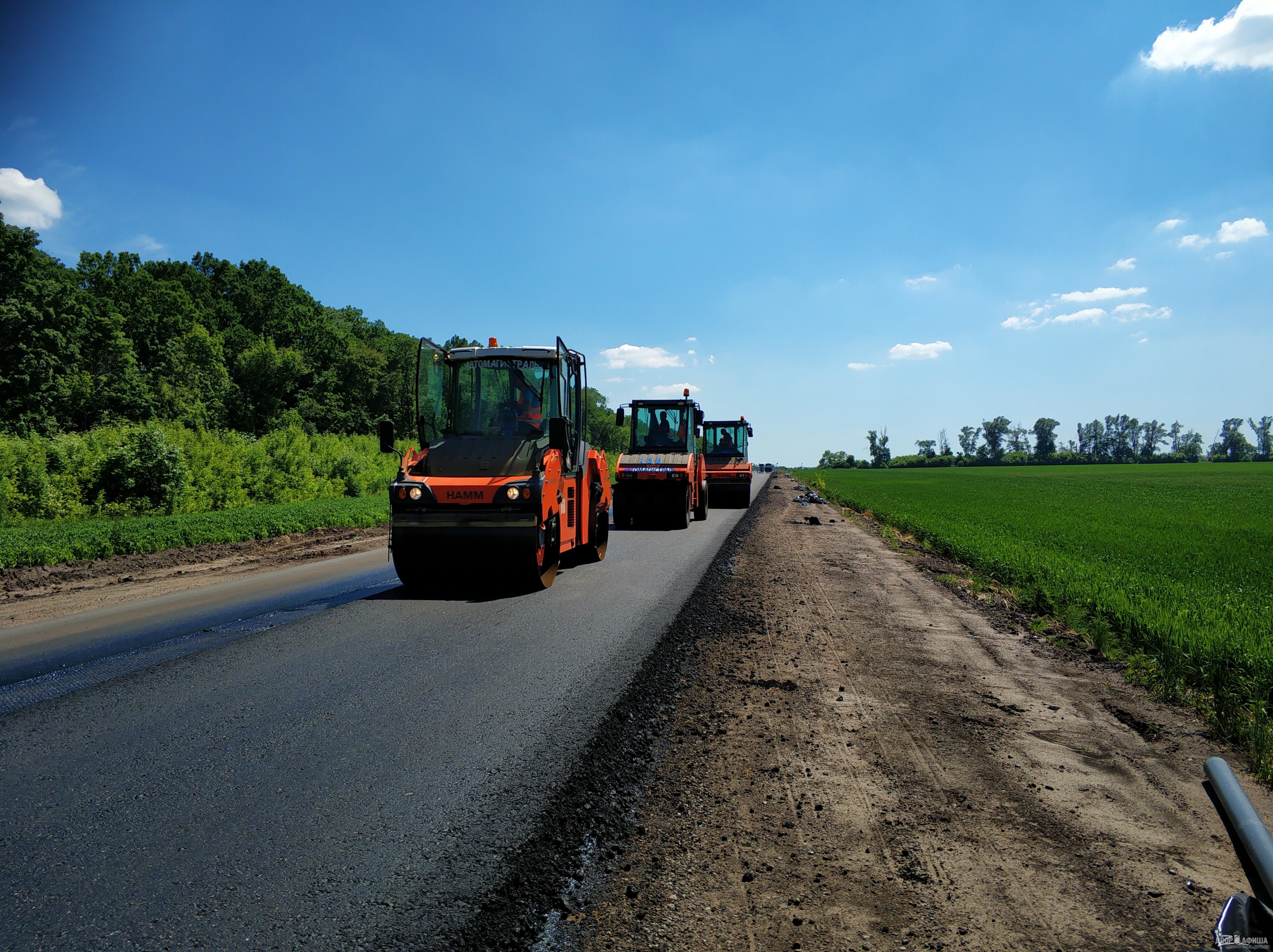 На дороге Мерефа-Лозовая-Павлоград укладывают асфальтобетонное покрытие