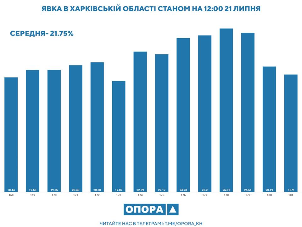 Анализ динамики явки избирателей в Харькове и области от Гражданской сети «Опора» по состоянию на 12.00.