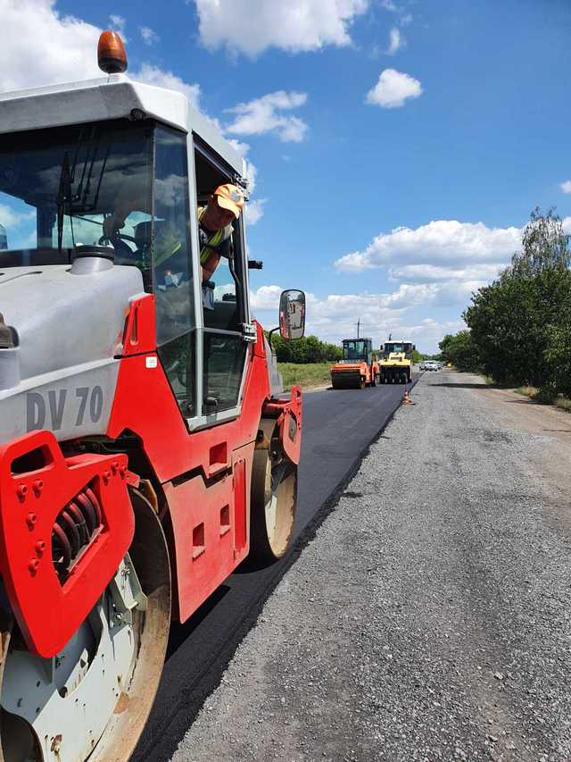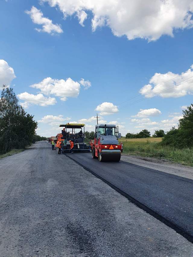 На трассе Полтава – Красноград настилают новое дорожное покрытие (ФОТО)