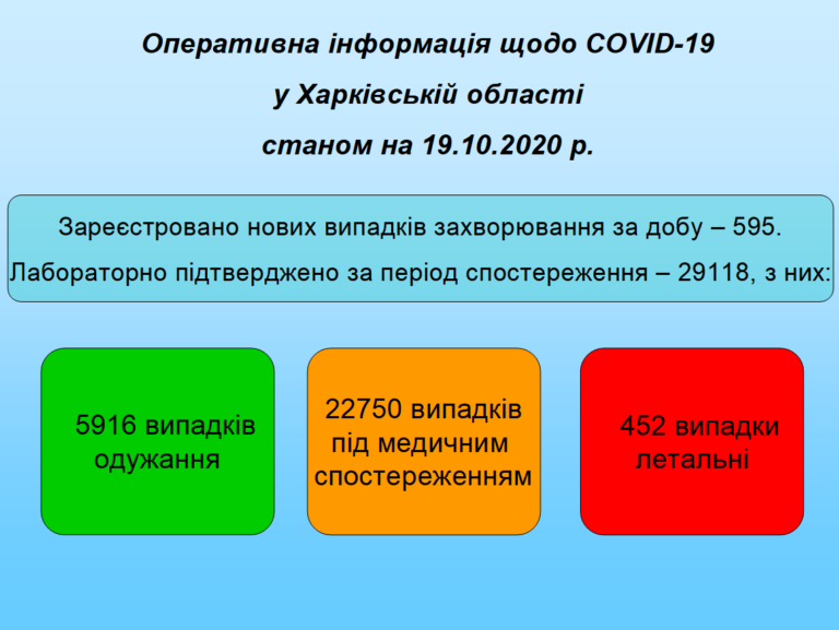 Диагноз COVID-19 подтвержден у 595 жителей Харьковщины