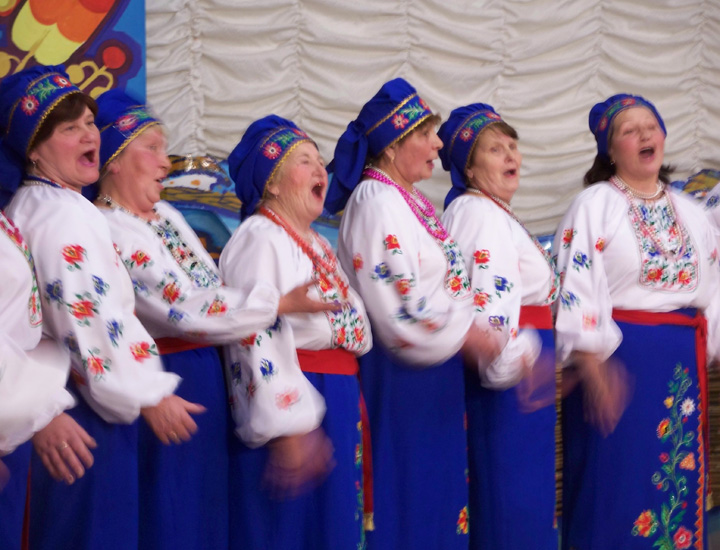 На фолькльорную гостиную в Харьковский областной центр народного творчества собрались коллективы Харькова и области, как детские, так и кружки самодеятельности для взрослых. Только вокал и аккордеон — как в старину,к ак в селе. Многоголосье, соло, песенные диалоги и сценки — во всем многоцветии песенной народной культуры Харьков отмечал Масленицу.