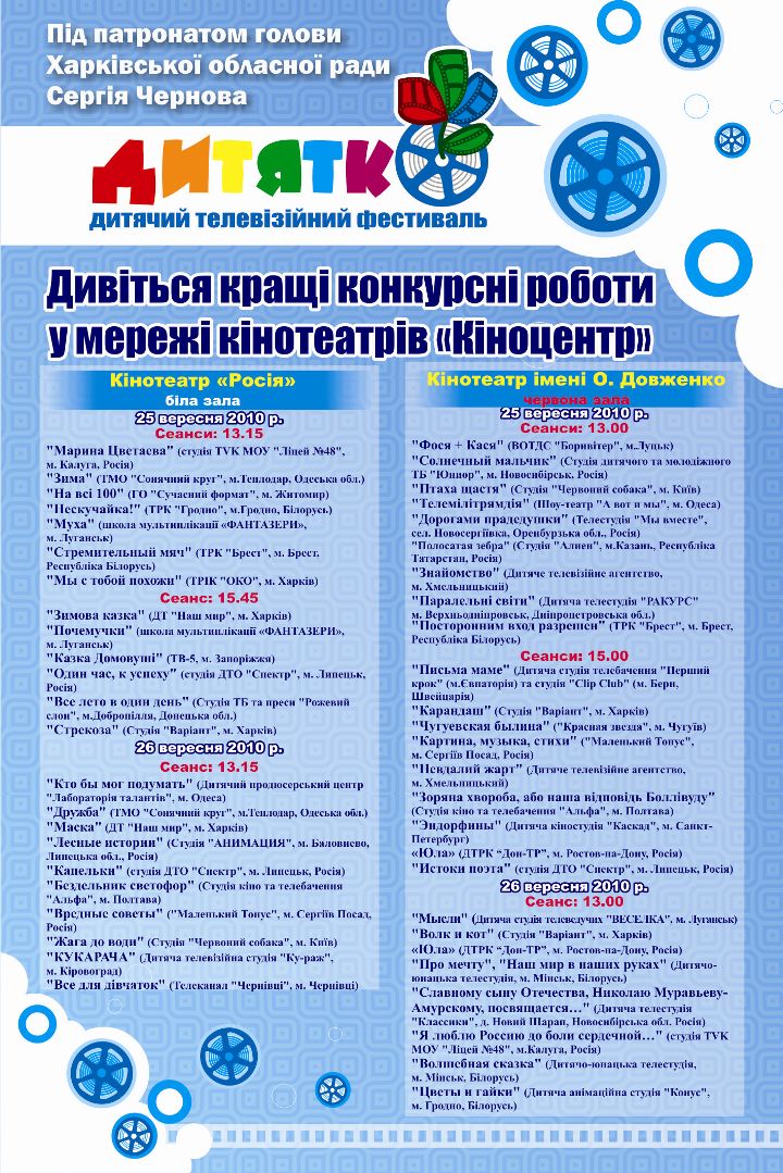 Международный детский телефестиваль «Дитятко» пройдет в Харькове (Программа фестиваля)