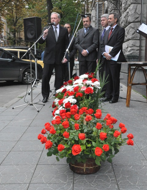 Он отметил символичность того, что доска расположена именно на этом здании – прямо напротив расположен памятник другому поэту, украинцу Тарасу Шевченко.