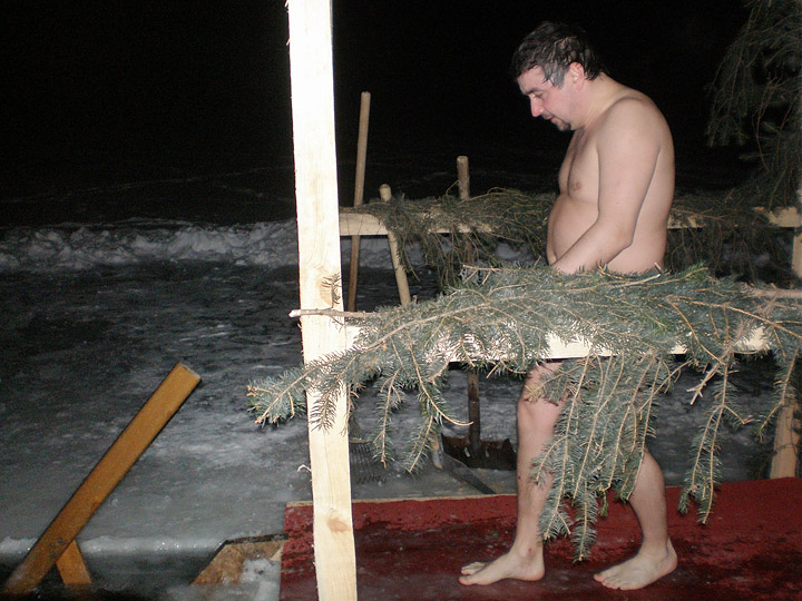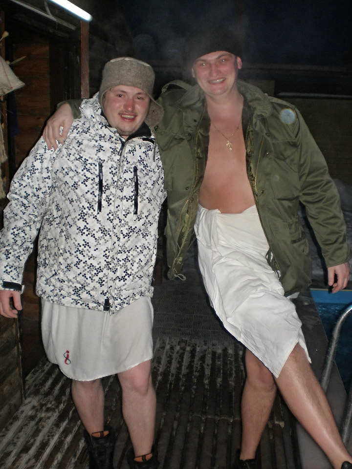 А около часа ночи 19 января (когда вода уже приобрела свои чудесные свойства) журналисты переместились в русскую баню комплекса «Баден-Баден», где буквально на минуты разминулись с «августейшими особами» города, также посвятившими вечер накануне Крещения водно-оздоровительным процедурам.