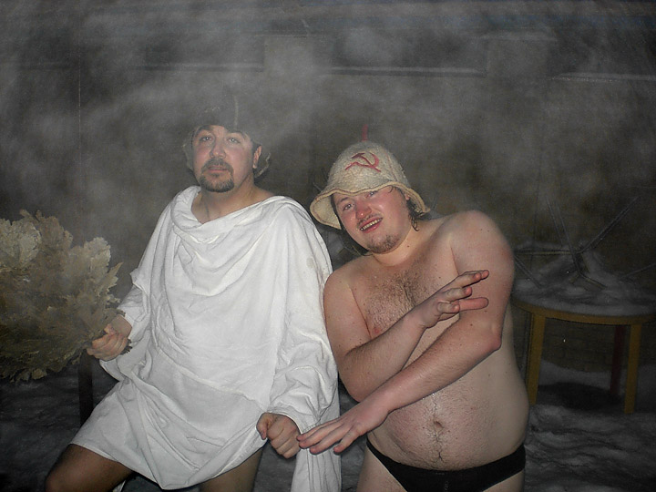 Шеф-редактор Интернет-группы «Дозоры» Ростислав Касьяненко и экс-сотрудники ТО «Иначе» (ныне – КП «Харьковские Известия») Станислав Шевченко и Филипп Пузанов начали банный марафон вечером 18 января в турецкой бане «Олимп», расположенной в комплексе «Тополек».