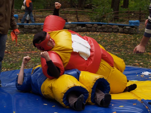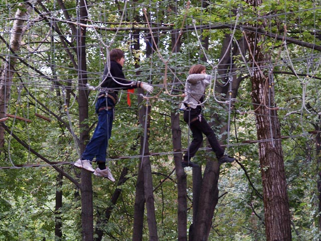 В самом парке посетителей встречала не только традиционная трехуровневая трасса, тир и бои сумоистов, но и несколько новинок. Одной из них был веревочный лабиринт для тех, кто хочет вообразить себя спецагентом.
