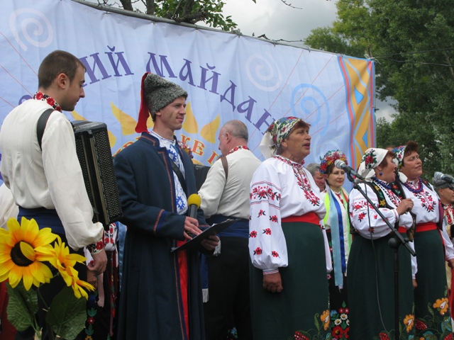 На «поющей площадке» выступили 35 фольклорных коллективов Харьковщины. Вели концерт артисты харьковского театра «Может быть».