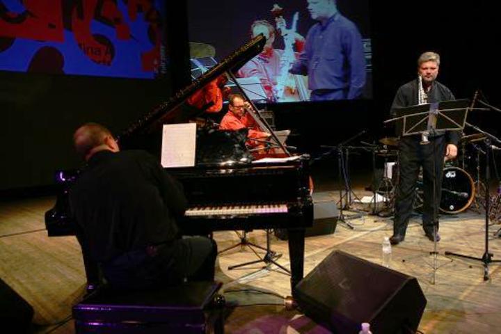 Впрочем, в этот день народ не скучал. Вечер открыли музыкой замечательного трио: саксофонист Александр Рукомойников, контрабасист Мариуш Богданович и наш, харьковский, талантливейший джазовый пианист Сергей Давыдов.