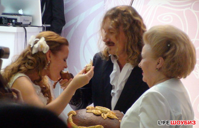 Борис Моисеев за весь вечер даже ни разу не присел за праздничный стол, уже в середине вечера он практически полностью взял на себя функции Малахова. Сменяя жаркие речи в честь молодоженов песнями, он исполнил свои знаменитые хиты.