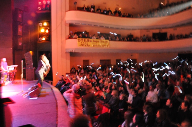 Две медленные композиции – и зал поднимает руки с включенными мобильными, вместо огоньков зажигалок.