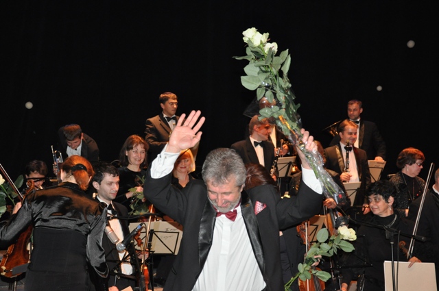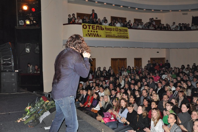 После первой же песни он обратился к залу, рассказав свою историю знакомства с художественным руководителем Харьковской областной филармонии, дирижером Юрием Янко, и поделился впечатлениями от первой репетиции.