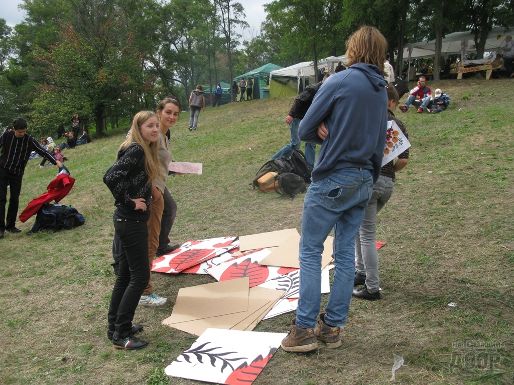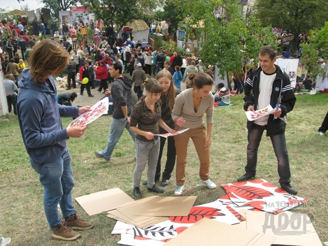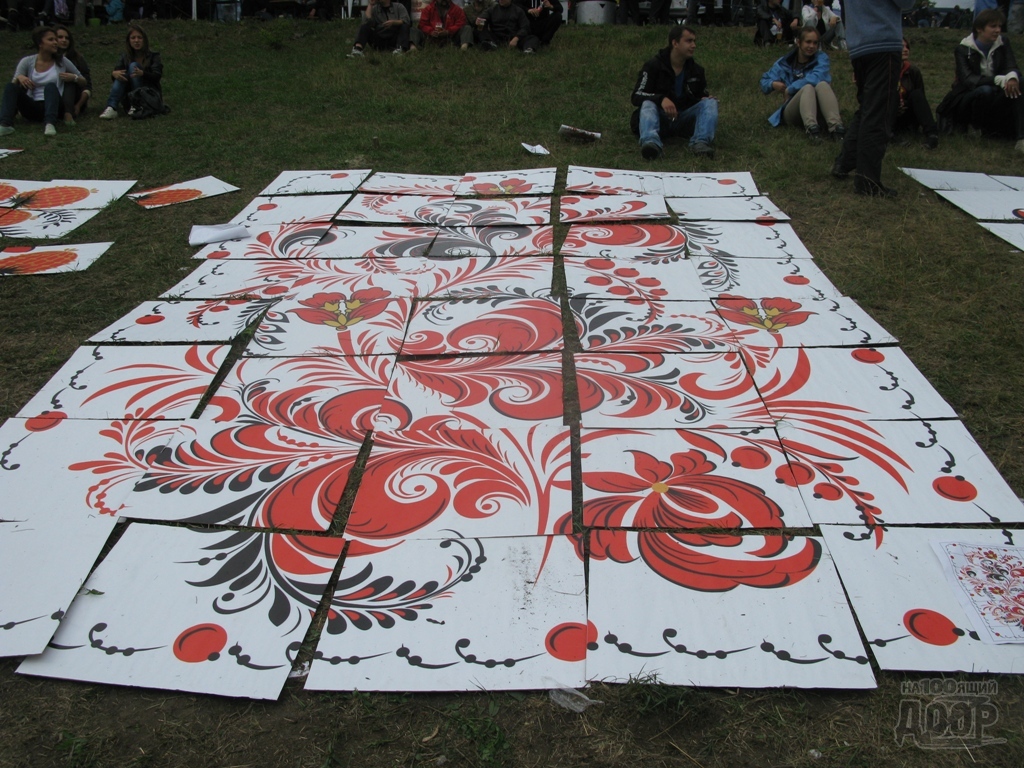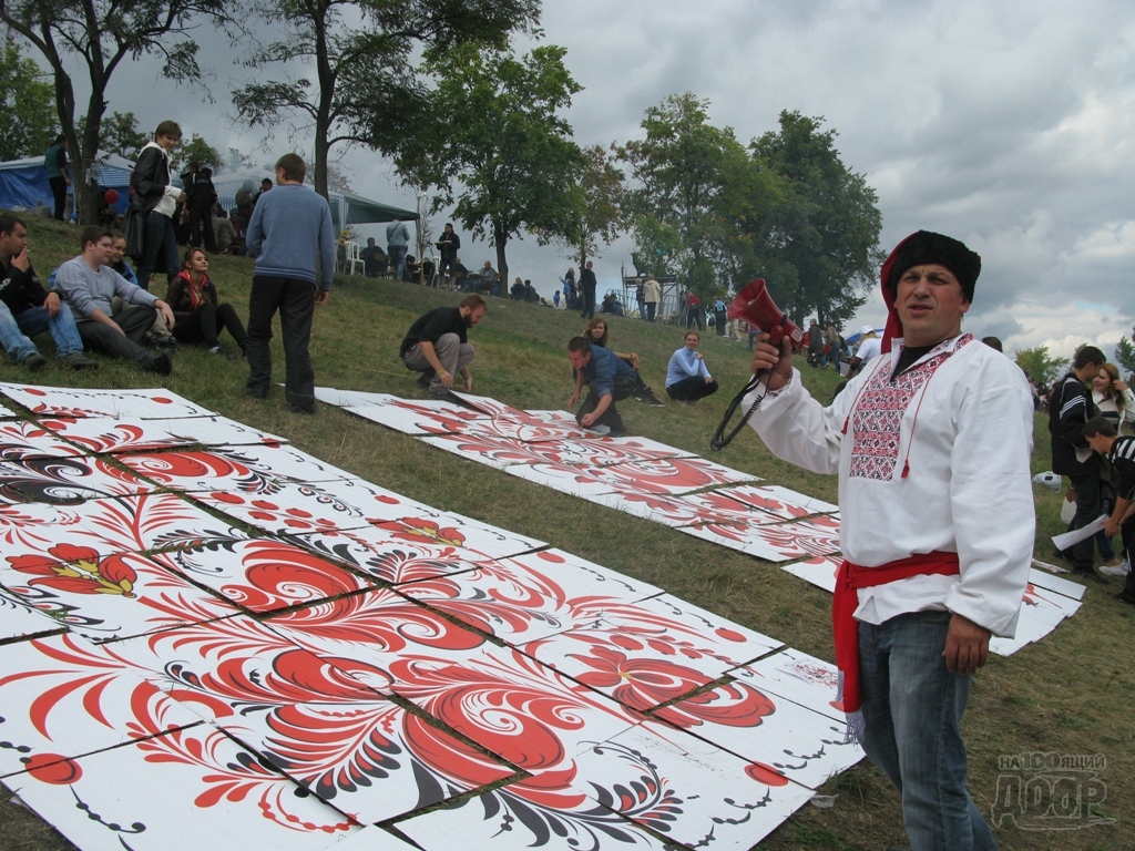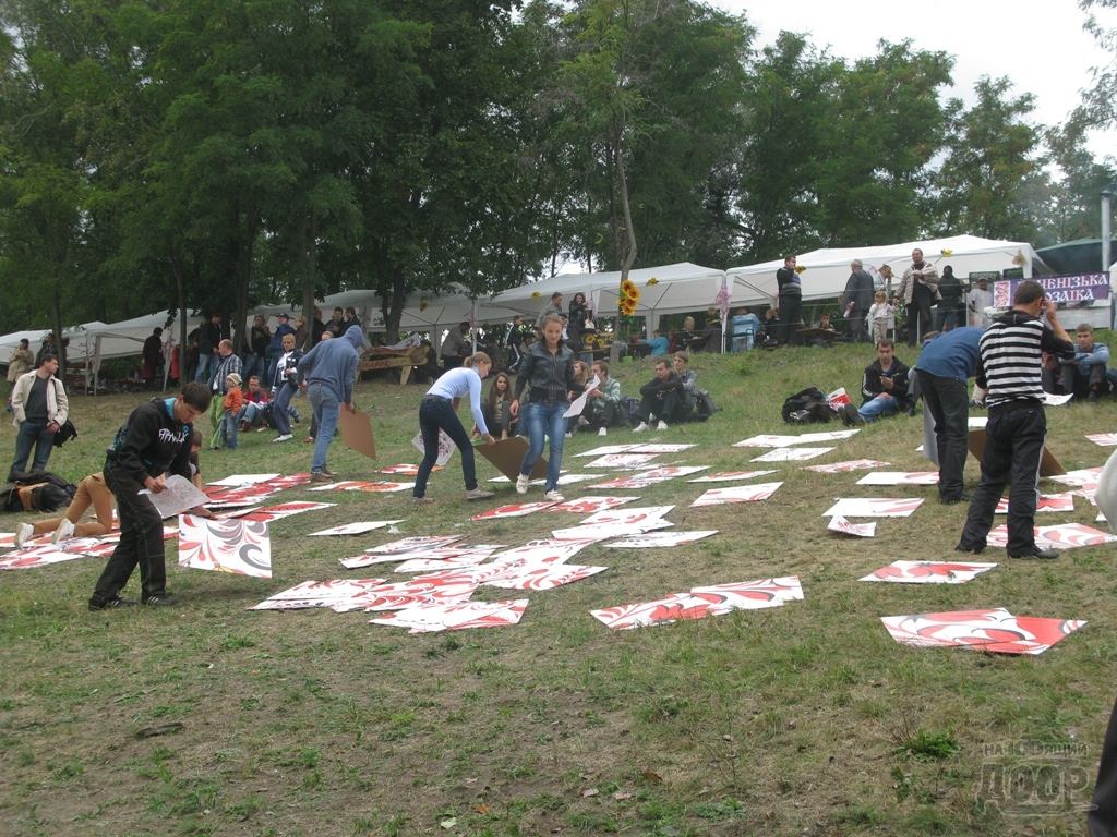 В рамках фестиваля на одном из склонов холмов проходило соревнование – команды-участники на скорость собирали три пазла с национальным узором размером 3 на 7 метров. Команда победителей получала 500 фестивальных гривен, которые можно было обменять на разнообразные сувениры: значки, футболки, ручки с логотипом «Печенежского поля».