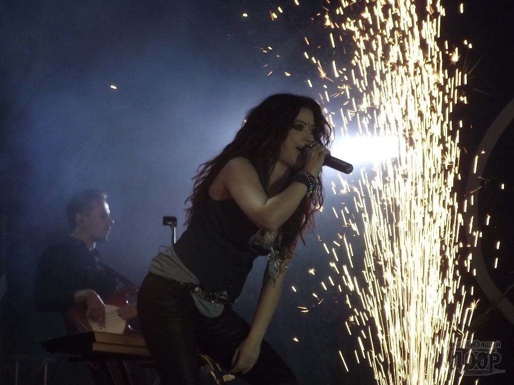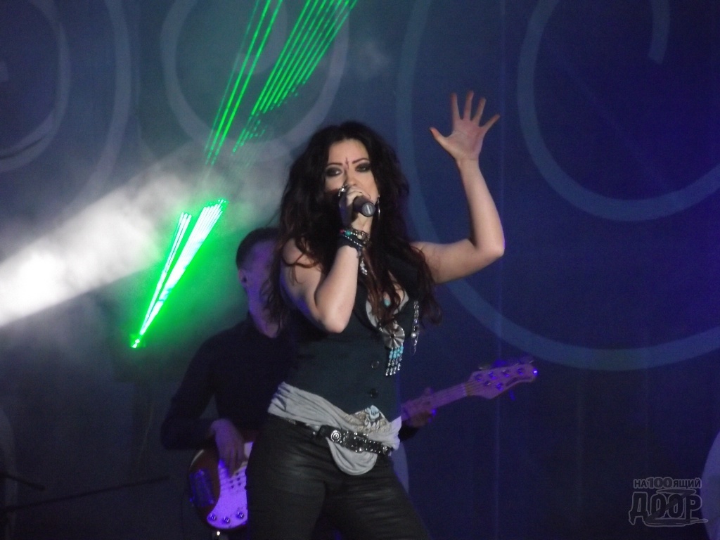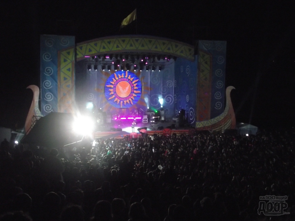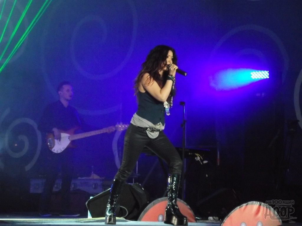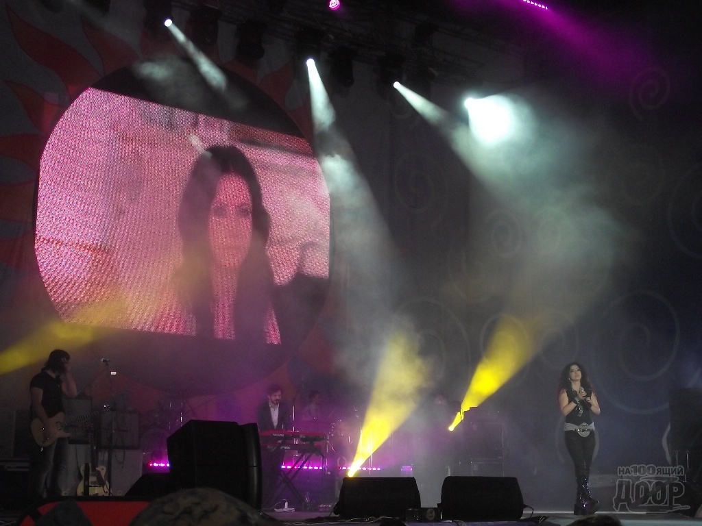 После длительной паузы и настройки аппаратуры, на сцену все же вышла Lama со своим коллективом и поспешила исполнить всеми любимые композиции. Многотысячная толпа подпевала певице.