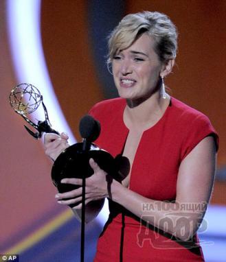 Стоит отметить, что предела радости актрисы не было. С криками «Да!» звезда «Титаника» буквально взлетела на сцену, где ее уже поджидал Хью Лори (Hugh Laurie) с наградой. При этом Кейт принялась жадно целовать Доктора Хауса.