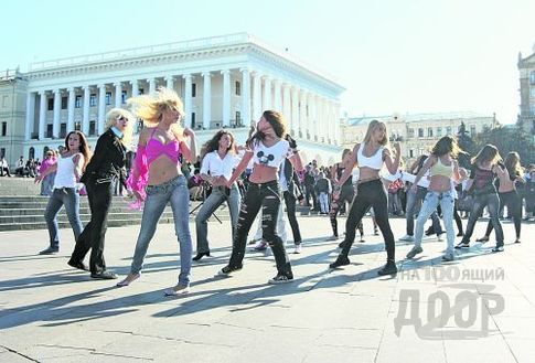 ТАНЦЫ. Пока Спирс приценивалась к вещичкам и баловалась сладким, неподалеку, на Майдане Незалежности, в ее честь танцевали фанаты (такой же флешмоб состоялся и во время приезда певицы в Питер). 15 подростков, под удивленные взгляды прохожих и песни своей любимицы, выдавали различные «па», даже не догадываясь, что их кумир рядом! Напомним, концерт Бритни пройдет завтра во Дворце спорта (билеты — 390—9990 грн).