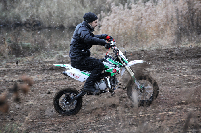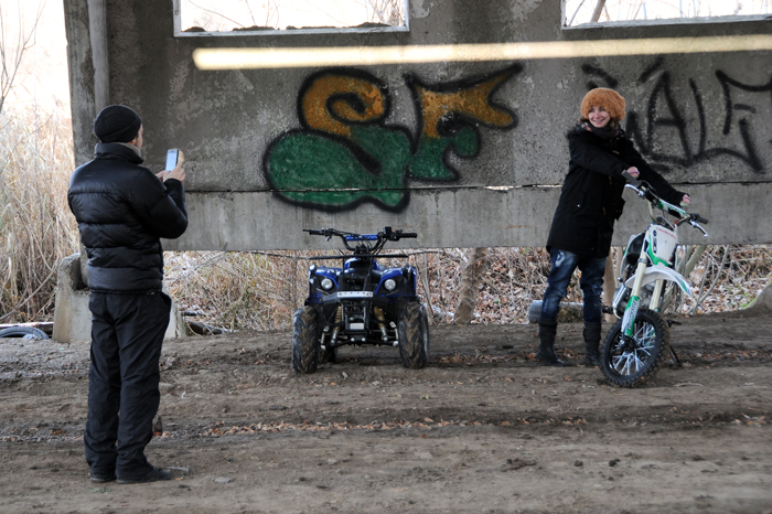 Питбайк оседлал Сергей Бабкин, на квадрациклах лихо рассекали Станислав Коновов и Константин Шепеленко. А вот кроссовый мотоцикл для Петра Целуйко на съемочную площадку так и не приехал. Произошла небольшая накладка в съемочном процессе.