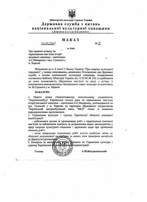 Памятник Антону Макаренко демонтировали. Он переезжает на ФЭД (Добавлен Документ)