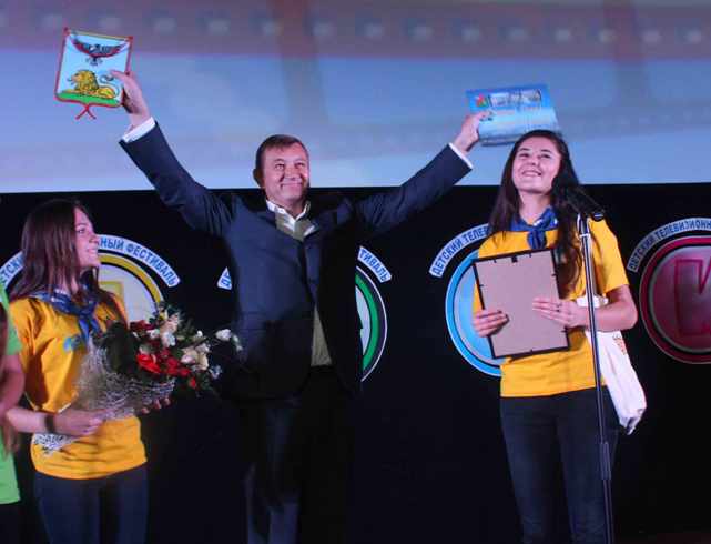 Подарок от партнеров фестиваля Авторской школы Бойко, телевизор, за победу в номинации «Лучшая телепрограмма детской телевизионной студии получила студия «Первый шаг» из Евпатории.
